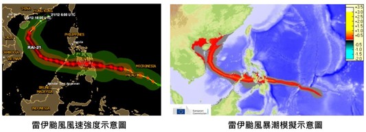 圖4 雷伊颱風影響期間之風速、風暴潮強度分布圖(資料來源:GDACS[4])
