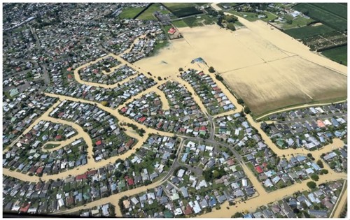 圖3、嘉布瑞爾颶風造成霍克斯灣內皮爾地區嚴重淹水之空拍照片(圖片來源:New Zealand Defence Force, NZDF)[6]