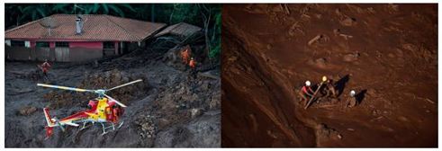 官方公告,截至28日該潰壩事件已造成65人死亡,仍有將近300人失蹤,當局指出事發當時有427人位於該礦區。巴西官方出動200名消防人員及直升機。在持續搶救的同時,27日凌晨,災區附近的另一個水壩傳出警報,因為雨後上漲的水位,使壩體有潰堤的危險。警消人員緊急撤離附近2.4萬民眾,所幸潰壩警報解除,但搜救行動也因此一度被迫暫停。隨著泥漿逐漸風乾硬化,現場搜救的困難度大幅提高,失蹤者的生還機會渺茫。(圖3)