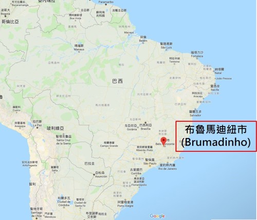 圖1布魯馬迪紐市(Brumadinho)位置圖 (底圖:google map)