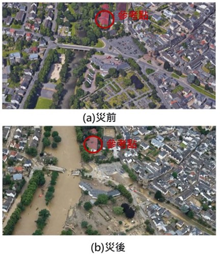 德國受創最嚴重的是西南部的萊茵蘭-普法茲邦(Rheinland-Pfalz),其次是北萊茵-西發利亞邦(Nordrhein-Westfalen)。且以萊茵蘭-普法茲邦阿爾魏勒縣(Ahrweiler)的損失最為慘重,當地的阿爾河(Ahr)因洪水潰堤致使許多建築物損毀,並造成至少18人死亡,當地災前與災後影像詳如圖2所示。洪水還導致部分地區大範圍停電,災區也傳出電話訊號中斷、道路阻斷的狀況,居民遭強制疏散,德國的基礎設施破壞相對嚴重。而比利時災最嚴重的地區是列日省(Liège Province)以及那慕爾(Namur)省和盧森堡省(Luxemburg),圖3為列日省受災情形,房屋受損、街道洪水消退中,比利時宣布訂7月20日為全國哀悼日,向不幸罹難者致哀。
