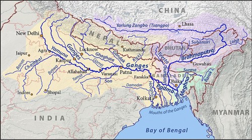 圖2 、布拉馬普特拉河(Brahmaputra river)和恆河(Ganges river)流域圖(資料來源:Wikipedia)[2]