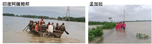 圖5 、印度阿薩姆邦與孟加拉 5 月洪災照片(資料來源:圖左為Floodlist、圖右為OCHA)[3,5]