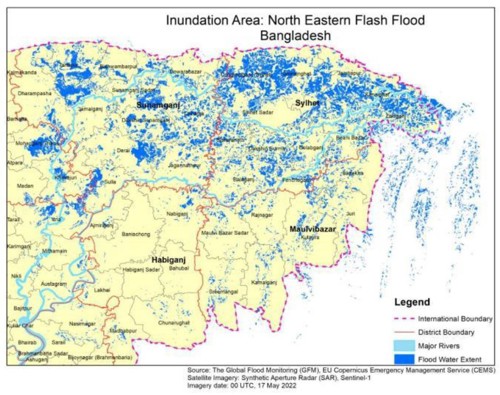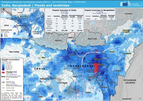 這次強降雨造成印度之布拉馬普特拉河流域與孟加拉東北部地區嚴重淹水,根據2022 年 5 月 25 日歐盟緊急應變協調中心(ERCC)統計資料顯示,印度受洪災影響人數約651,180人,以及至少62人死亡;孟加拉受洪災影響人數約2百萬人,以及10人死亡。