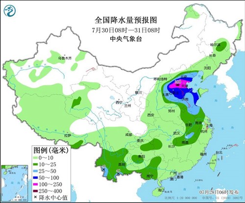 圖2、中國於2023年7月30日至31日之降雨預報(資料來源:中國氣象局)[2]