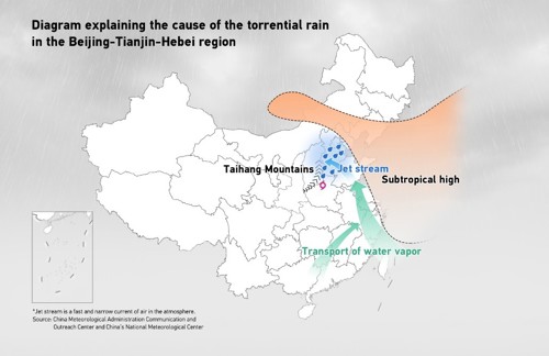 圖4、2023年中國京津冀洪災成因示意圖[6-8]