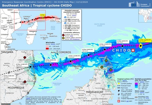 依據 12 月 15 日外媒報導 (Radio France Internationale) 法國已派遣救援隊和醫務人員以及數公頓物資前往馬亞特島及其鄰近受奇多熱帶氣旋的國家,法國內政部長亦已經前往當地,預計未來幾天將有超過 800 名救援人員前往支援[7]。馬亞特島的貧民窟多為鐵皮屋和其他非正式建築,受災相當嚴重,除島上生活著許多非法移民外,再加上宗教穆斯林有死者死後 24 小時內埋葬的傳統,使得傷亡人數的統計相當困難[7]。基礎設施部分,主要機場和醫院等公共基礎設施都遭到嚴重破壞,電力供應也中斷,僅有軍用飛機才能飛上該島,這使得緊急應變更加複雜。