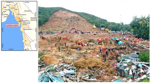 圖5-崩塌發生位置與照片(資料來源: MINU&MYANMAR TIMES)[9][10]