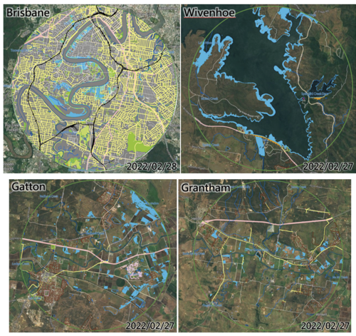 位於昆士蘭東南部的Brisbane Rivers 自2月22日強降雨引發水位暴漲,發布中度至高洪水警報。持續的降雨,澳洲氣象局於2月28日,再度發布洪水警告,當日水位上升至6.59公尺,高過洪水警戒水位5.5公尺,Brisbane Rivers及其支流影響鄰近城市發生洪災,水位上漲高出2017年洪水水位50公尺。