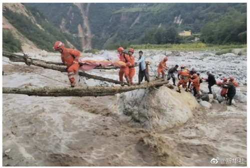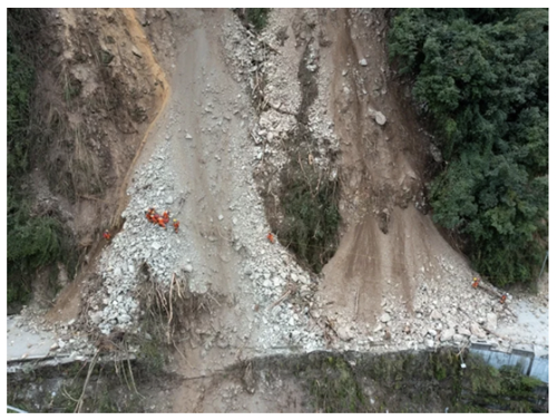 震央所在地在中國四川省西部甘孜藏族自治州 (簡稱甘孜州),地處青藏高原、四川盆地、雲貴高原的過渡帶,屬川西高原高山深谷區,境內海拔5000公尺以上的山峰有200餘座,山地面積占全州將近80% [8]。本次震央瀘定縣位於甘孜州東南部,屬大渡河中游,人口約8萬人。境內山高坡陡,具有豐沛的水力資源;然因地勢崎嶇,震後災區多處發生土石崩塌及道路中斷情形,加上災後當地接連遭受數波降雨衝擊,使得救援更加困難。圖3與圖4為災區現場救援情形,可見救援不易。
